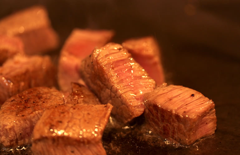 the exquisitely marbled meat is very soft that it melts in your mouth.