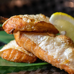 脂身の多いハラスの皮目までじっくりと焼き上げます